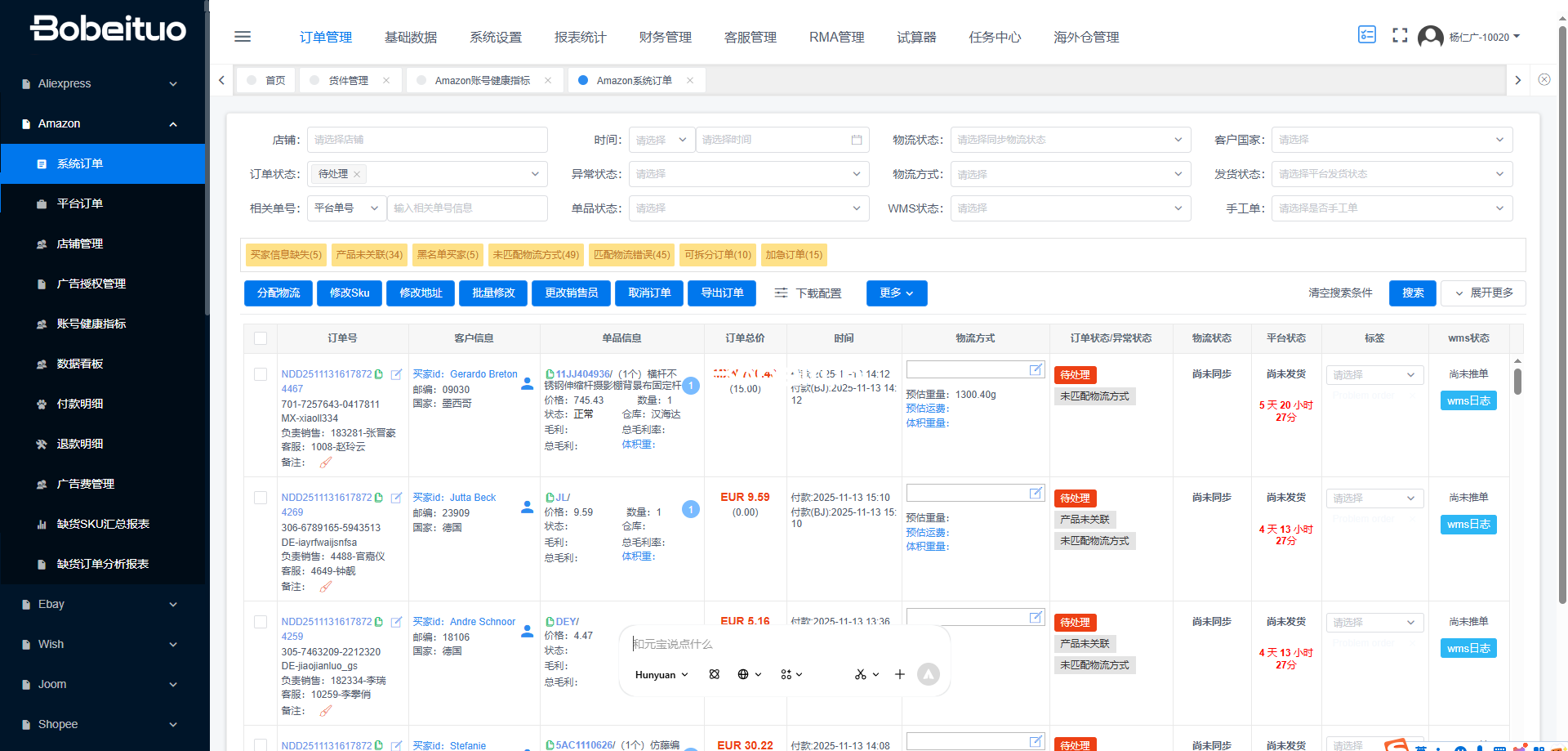 提供覆盖多店铺商品的统一库存视图,实现库存状态实时同步、预警提醒与库存周转监控。系统可追踪入库、出库、冻结库存等状态变化,并提供销售预测、库存老化分析等辅助决策能力,帮助卖家提升补货效率,减少缺货与积压。不包含物流标签生成相关功能。